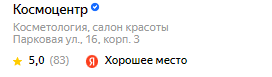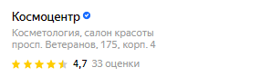 Рейтинг 4.7-5.0 на Яндекс.Картах